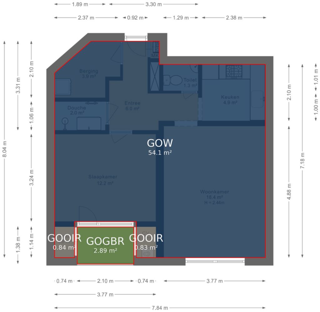- Woonoppervlakte: 54 m² (NEN 2580), inhoud 173 m³