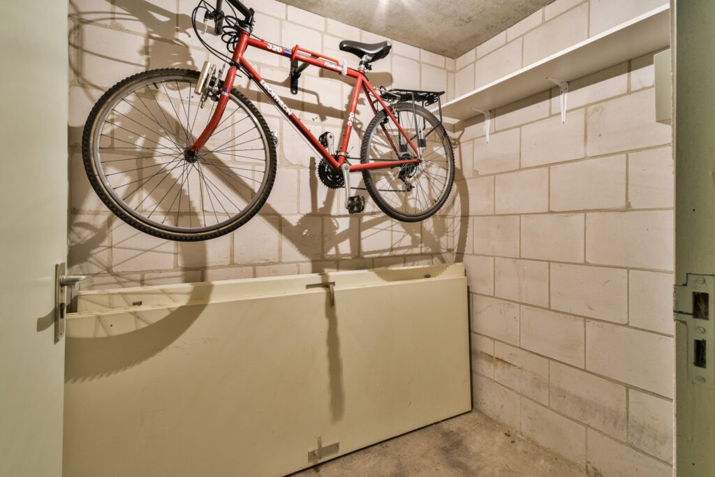 Communal entrance with stairwell and access to the basement, where the private bicycle storage is located.
